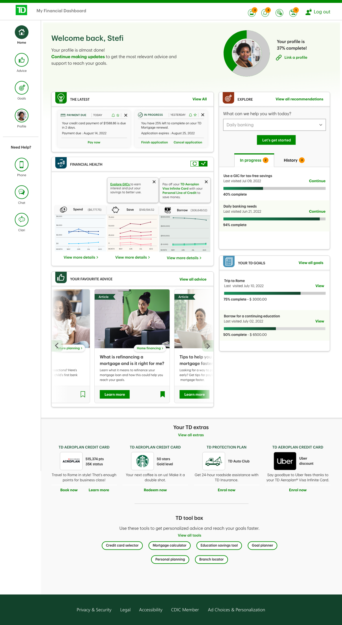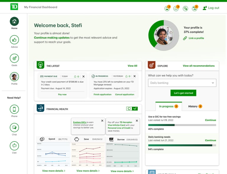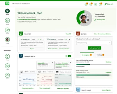 TD Financial dashboard is designed to offer an intuitive and personalized experience, aiming to understand individual customers and deliver tailored advice that meets their unique needs.