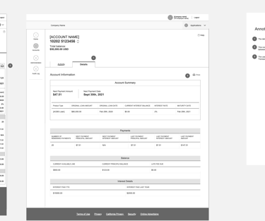 The business loan designs were created over a period of 6 months. The goal was to create screens that were intuitive, easy to understand and be a tool that customers would use on a regular basis.