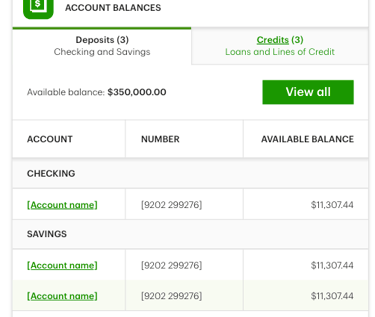 The user can view all of their loan accounts inside the new "credits" tab that was created.