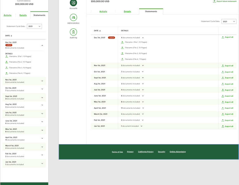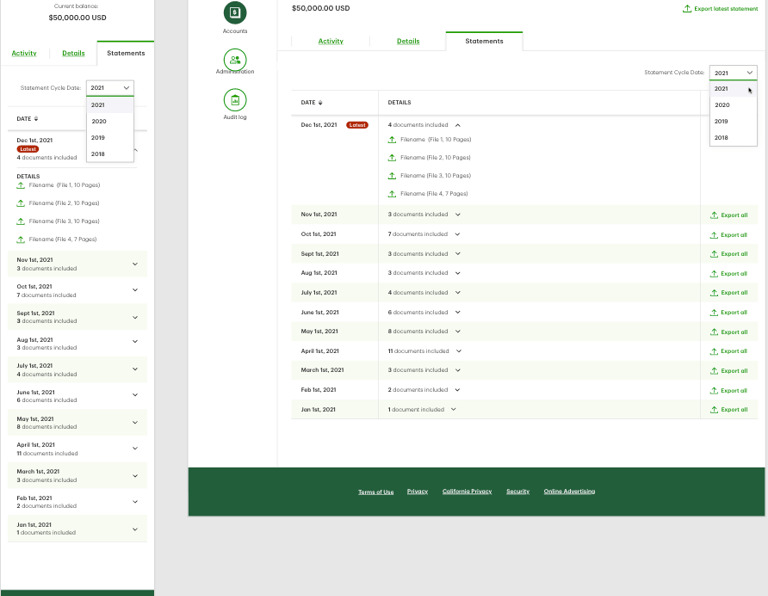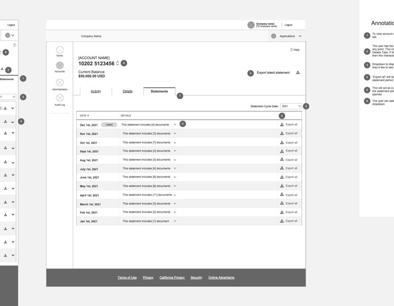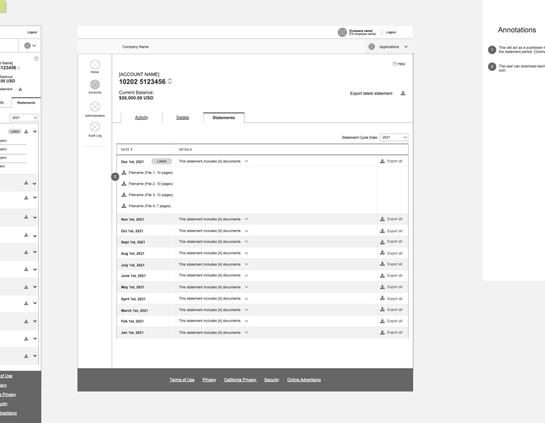 The goal was to create statements that were easily accessible, can be exported and provide the user with the ability to download the latest statement quickly.
